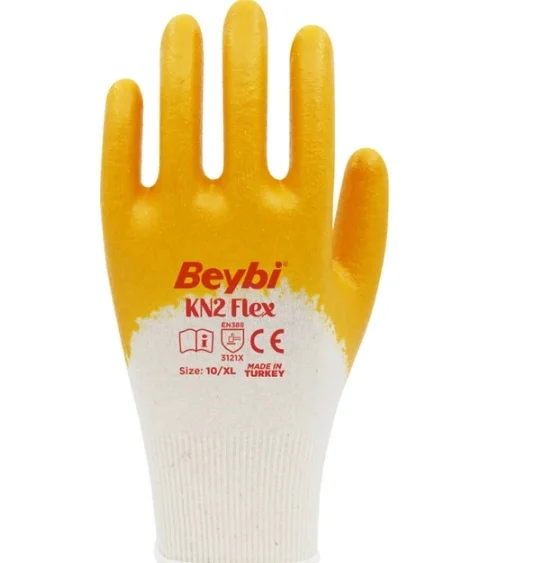 Kaplama:Sarı nitril kaplama (genellikle avuç içi) — yağ, gres ve bazı kimyasallara karşı dayanıklılık sağlar.