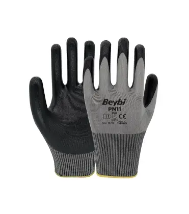 • Beybi PN11 eldiveni, polyester örgü yapısı ve nitril kaplamasıyla güvenli ve dayanıklı kullanım sunar.