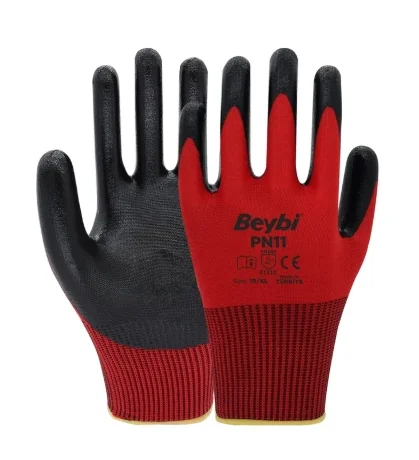 PN11 Polyester Örme Nitril Eldiven, çok yönlü kullanımı ve sağladığı koruma ile inşaat, bahçe, tarım, üretim, imalat ve iş güvenliği sektörlerinde tercih edilen bir eldiven çeşididir.