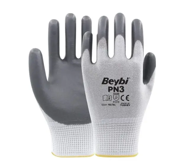 PN3 eldivenler ekstra ince ve hafif olması sayesinde üstün el becerisi ve konfor sağlar. Polyester örgü yapısı elinizin hava almasını sağlar, terletme yapmaz. Esnek konç yapısı bileğinize tam uyum sağlar. Aşınmaya karşı dayanıklıdır. Gıda ile temasa uygundur.