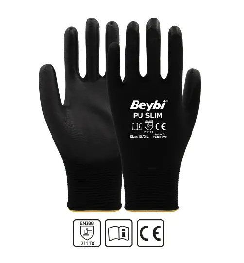 Kaplama:Poliüretan (PU) yarı kaplama (½) — avuç içi ve parmaklarda tutuşu artırır.