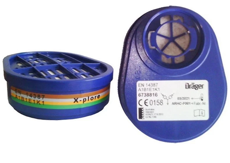 Drager ABE1 Filtre organik, inorganik asit ve gazlara karşı 30 x OEL veya 1000 ppm (hangisi daha düşükse) kadar organik / inorganik asit duman ve buhar konsantrasyonu.