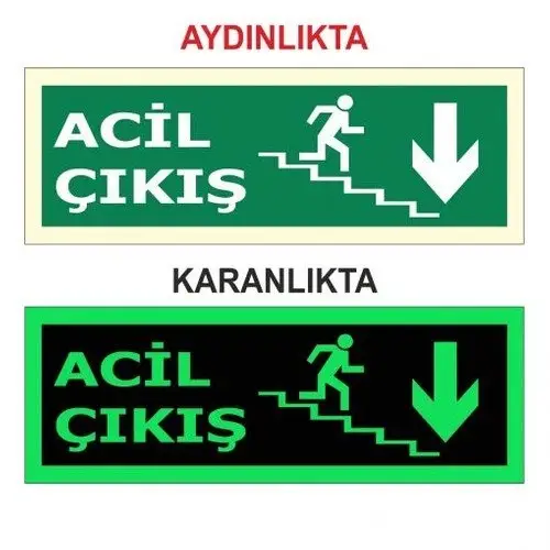 Fosforlu Merdiven Acil Çıkış Levhası Aşağı Yön özellikleri