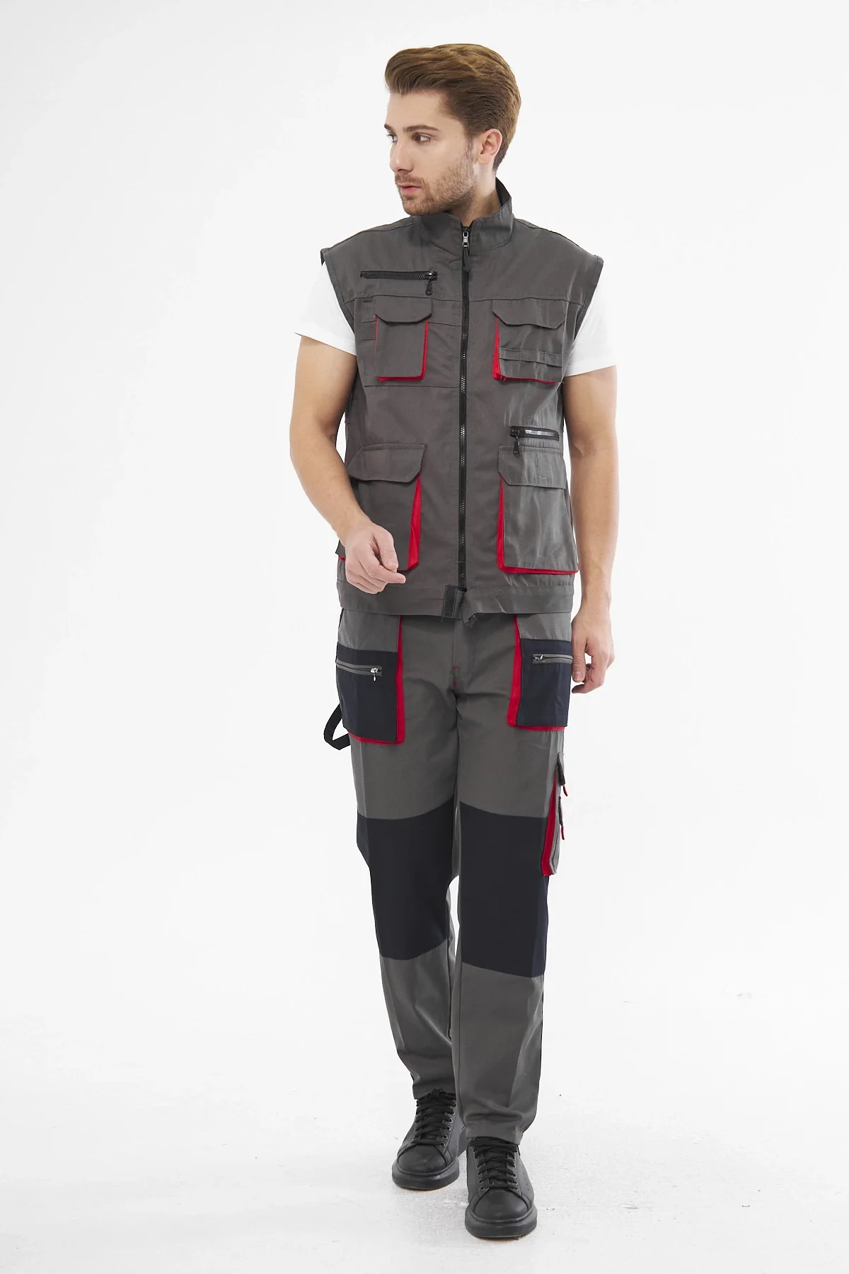 Orange Safety Gri Takım Berlin Harman Karışımı Yelek + Pantolon