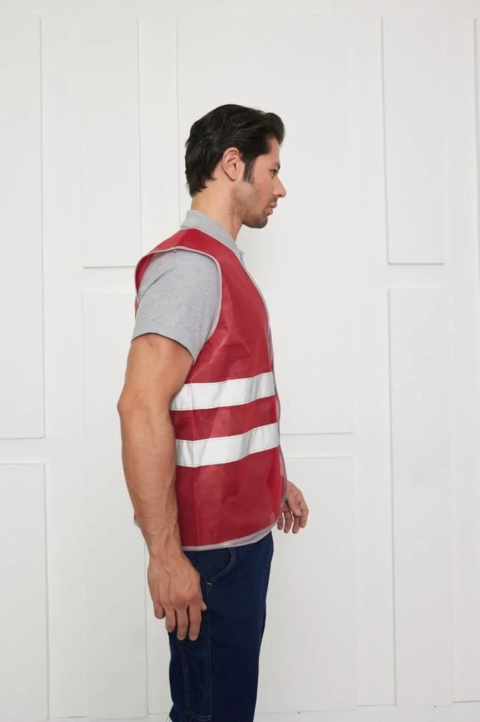 %100 polyesterden imal edilmiştir.120 gr/m2 fosforlu kumaş Reflektif yelek üzerinde 2 adet 5 cm reflektif şerit vardır.