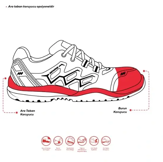 Mekap Pro Fresh RMK-90 S1, iş güvenliğine önem verenler için ideal bir seçenektir. Alüminyum burun koruyuculu bu iş güvenlik ayakkabısı, sağlam yapısı ve dayanıklı malzemesi ile uzun ömürlü kullanım sunar.