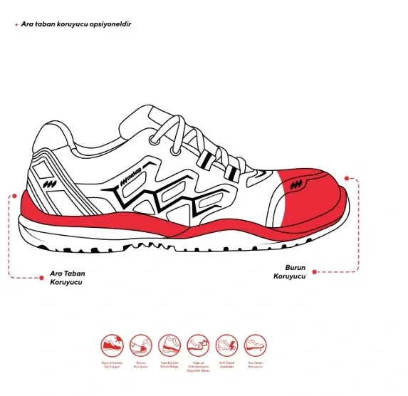 Rover taban, iş güvenliği ayakkabılarında sportif ve esnek bir deneyim sunar. Hareketlerinizi özgürleştirir ve rahatlık sağlar. İş ortamında dinamik bir performans sergilemek isteyenler için ideal bir seçenektir.