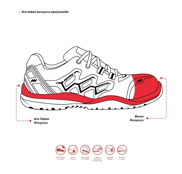 Rover taban, iş güvenliği ayakkabılarında sportif ve esnek bir deneyim sunar. Hareketlerinizi özgürleştirir ve rahatlık sağlar. İş ortamında dinamik bir performans sergilemek isteyenler için ideal bir seçenektir.