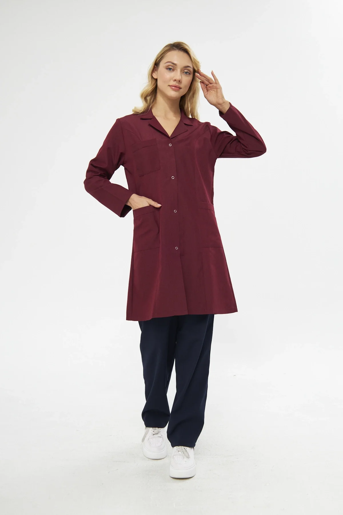 Mervem Bayan Lacivert İş Önlüğü Alpaka
