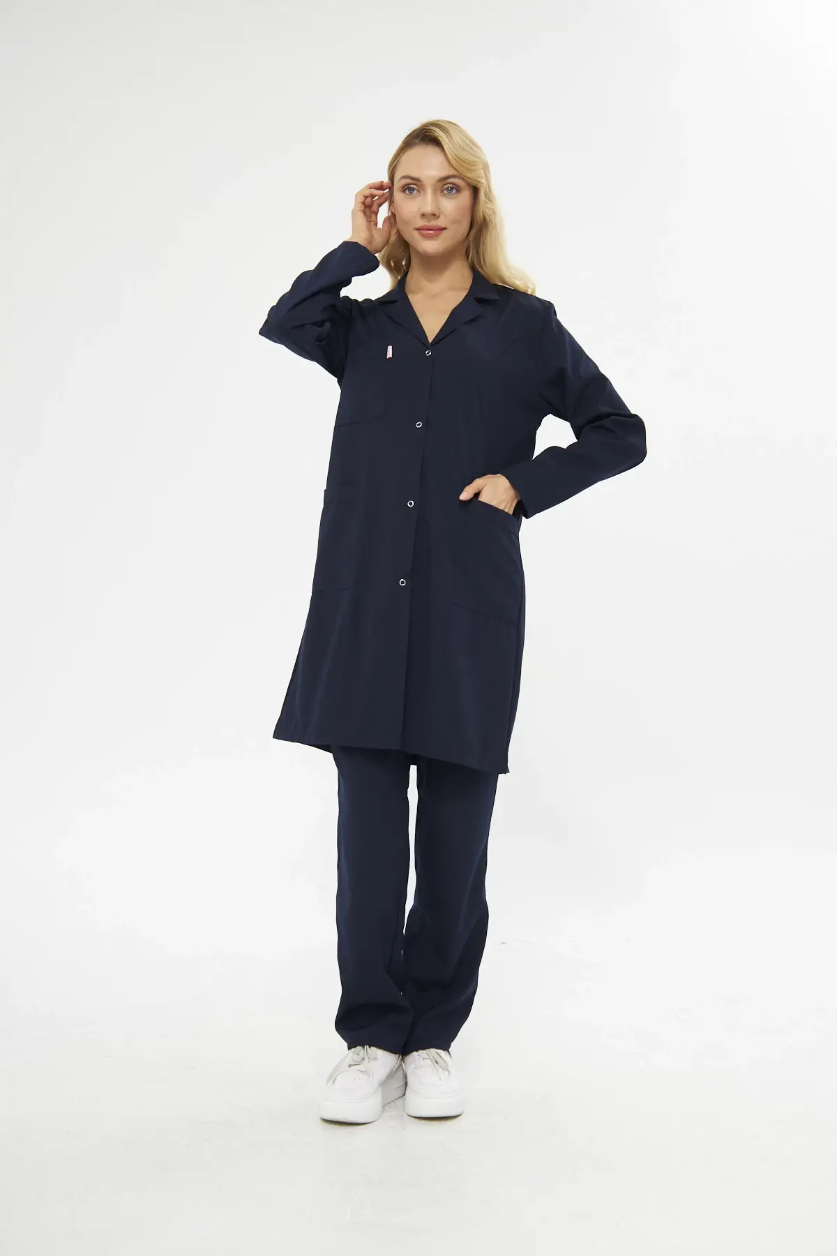 Mervem Bayan Beyaz İş Önlüğü Alpaka