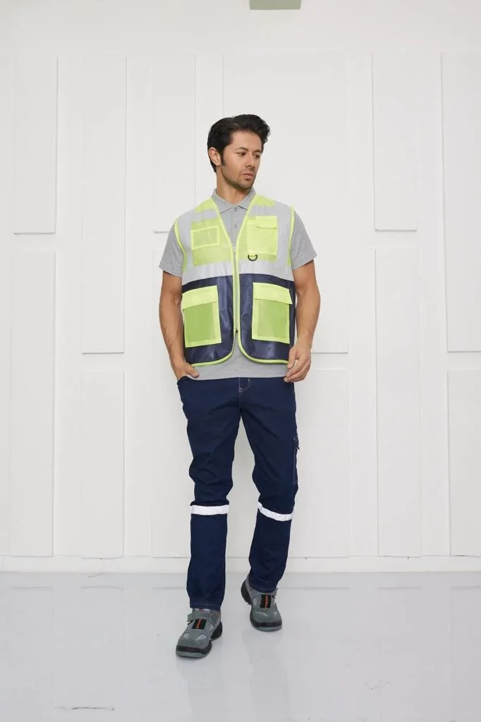 Orange Safety Gri-Lacivert Mühendis Tipi İkaz Yeleği