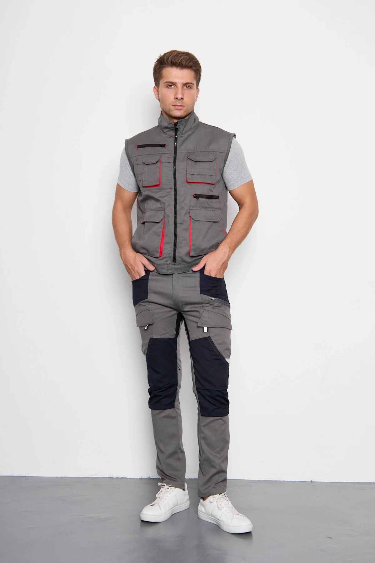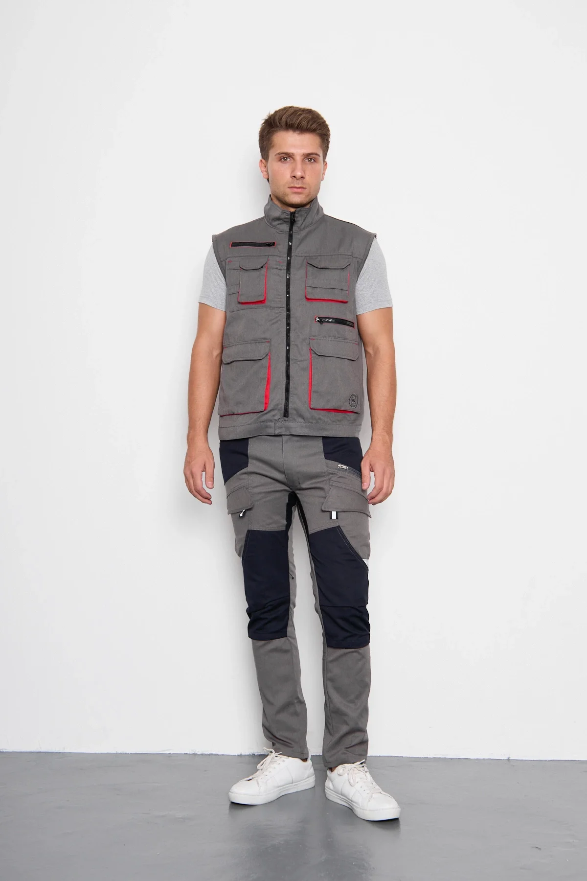 • Orange Safety Gri Takım Berlin Harman Karışımı Yelek + Pantolon, iş elbiseleri kategorisinde şıklığı ve güvenliği bir araya getiriyor.