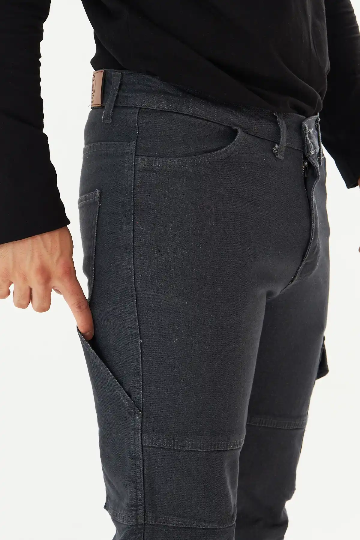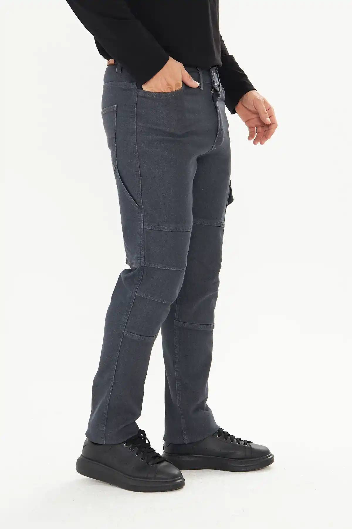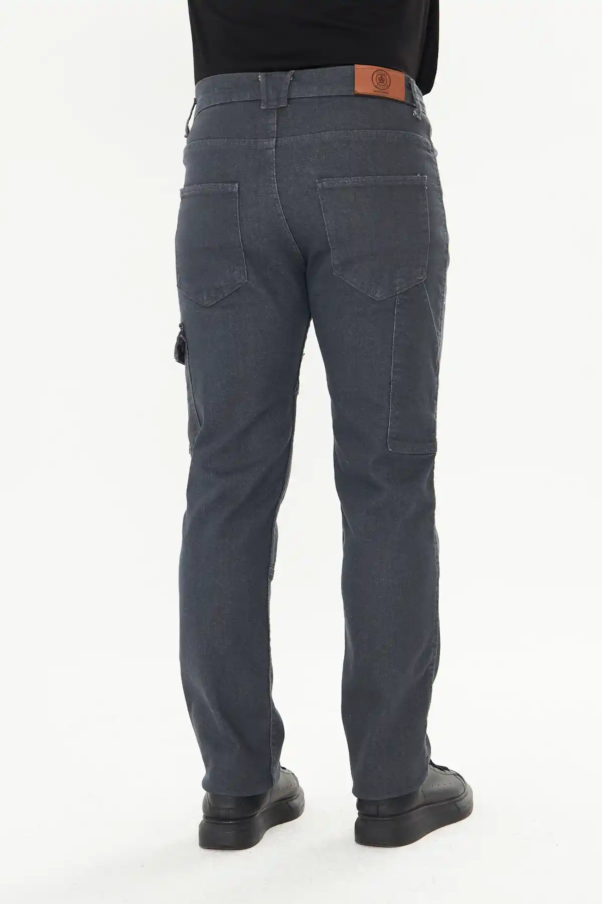 Yanlarda iki yarma cep, arkada cüzdan, yanda komando ve metre cebi olmak üzere toplamda beş cep vardır.