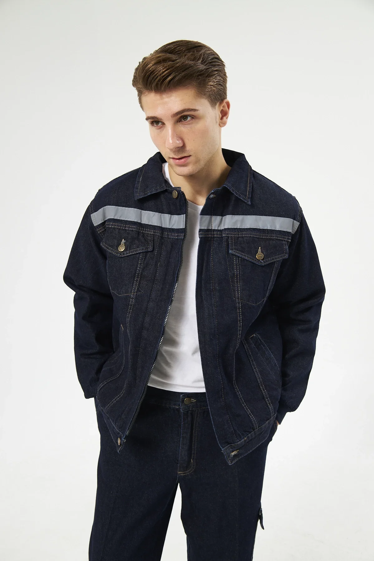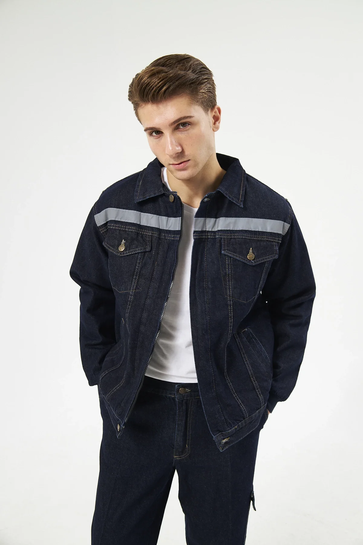 Orange Safety Saks Mavi Softshell Mont Kolları Çıkmalı Reflektörlü