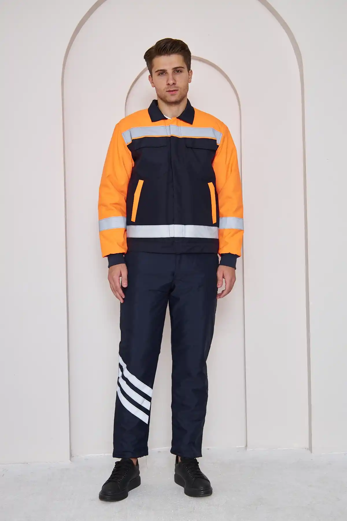 Orange Safety Turuncu Robalı Lacivert Soğuk Hava Mont Pantolon Takımı Su Ve Rüzgar İticili