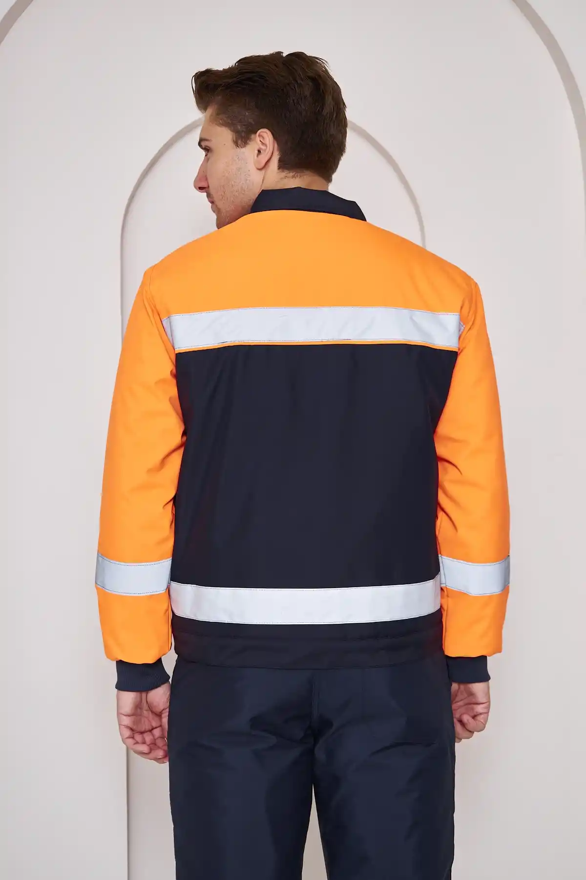 Orange Safety Turuncu Robalı Lacivert Soğuk Hava Montu Su Ve Rüzgar İticili