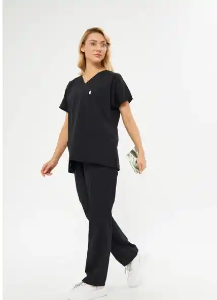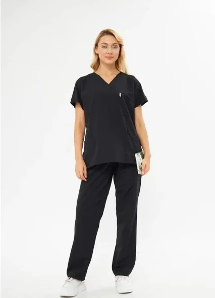 Mervem Cerrahi Takım - Siyah Renk (Terikoton İnce Kumaş)