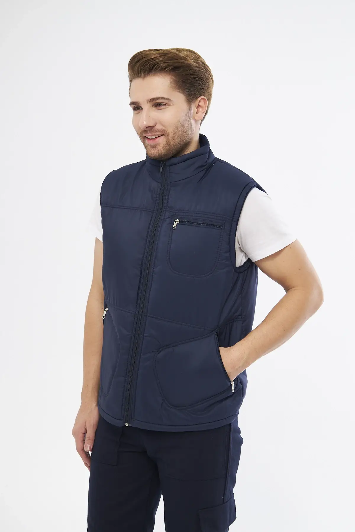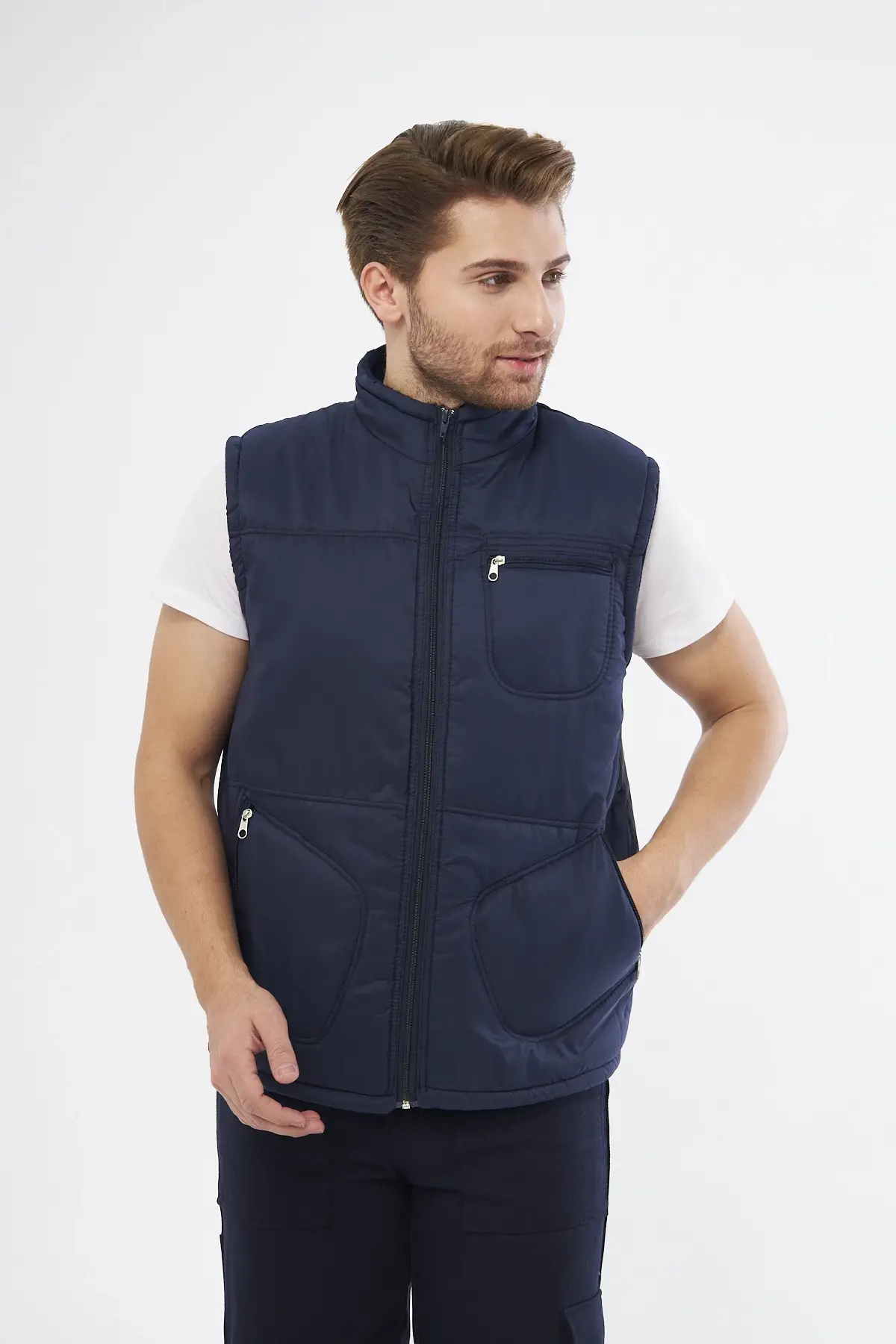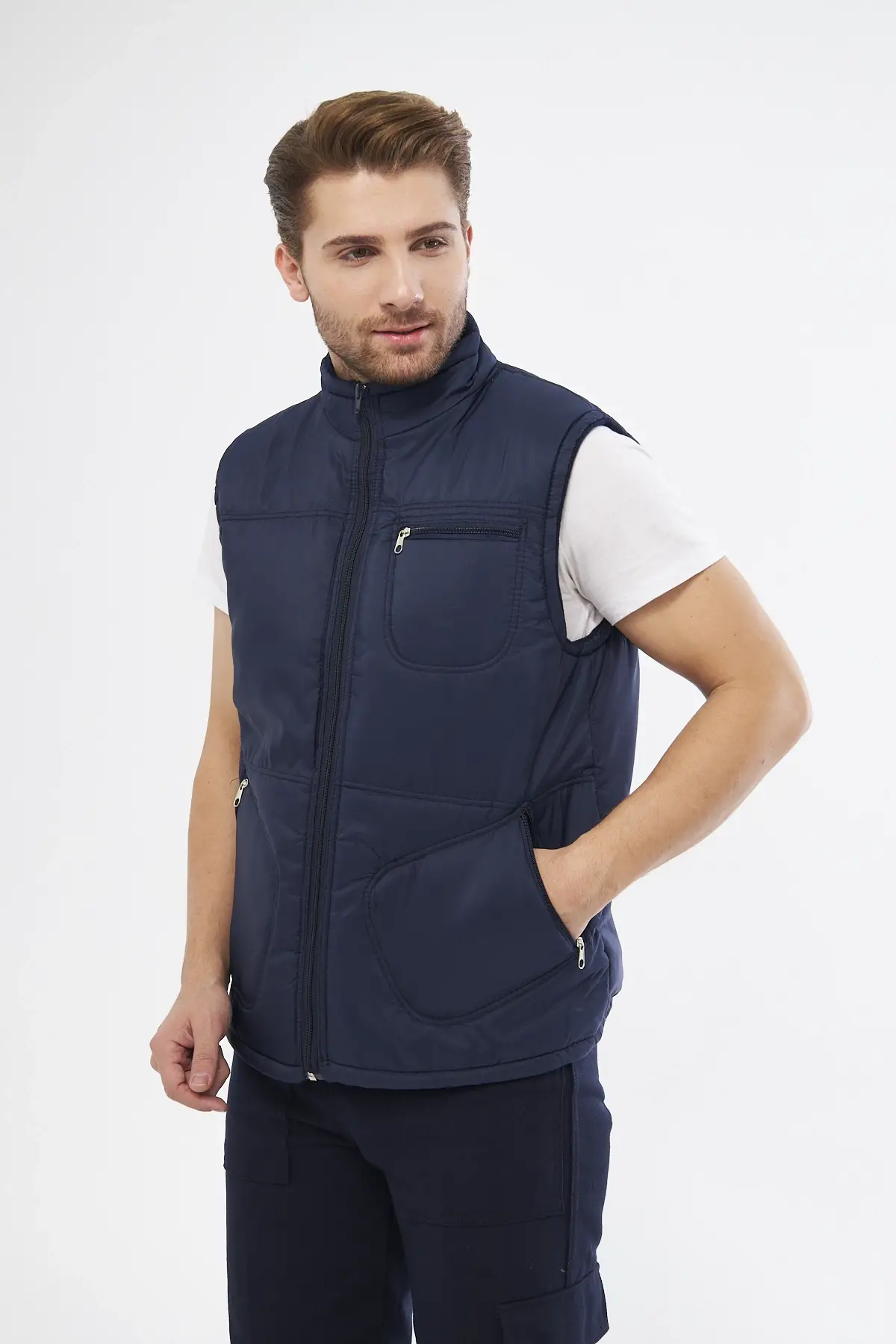 Mervem 7/7 Gabardin %100 Pamuk Kapitoneli Yelek Lacivert